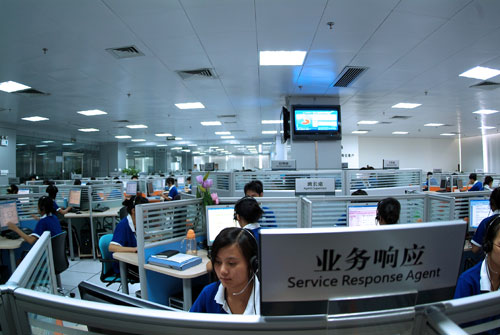 廣西廣電網(wǎng)絡(luò)客戶服務(wù)呼叫中心是目前國(guó)內(nèi)性能最先進(jìn)的呼叫中心,投資7000萬元的語(yǔ)音交換系統(tǒng)平臺(tái),與廣西廣電運(yùn)營(yíng)支撐(BOSS)系統(tǒng)相連接,與全區(qū)90個(gè)市、縣分公司實(shí)現(xiàn)工單系統(tǒng)互聯(lián)互通。呼叫中心配置了150個(gè)席位,80%以上話務(wù)人員大專以上畢業(yè),中心每天使用英語(yǔ)、越南語(yǔ)、老撾語(yǔ)等15個(gè)語(yǔ)種為客戶提供服務(wù)。