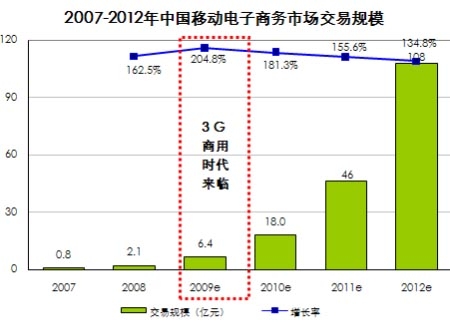 09年中國移動電子商務(wù)市場交易規(guī)模將達6.4億,發(fā)展?jié)摿薮?/b>