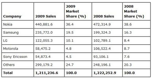 2009年各手機品牌銷售情況