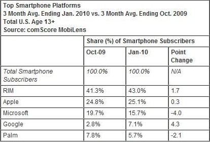 comScore報告顯示智能機(jī)RIM市占額達(dá)43%