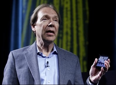 圖:Sprint CEO丹·海斯(Dan Hesse)在美國無線通信展上展示宏達(dá)電新手機Evo 4G