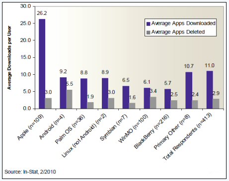 除了應用程序下載之外,In-Stat也追蹤應用程序的實際使用情況,發(fā)現(xiàn)用戶時常在下載某個程序但覺得不感興趣后,就把它刪除了,尤其是免費的應用程序。