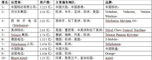 中移動位居全球無線運(yùn)營商排行榜第一