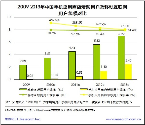 2010年中國手機(jī)應(yīng)用商店用戶增速遠(yuǎn)超移動互聯(lián)網(wǎng)