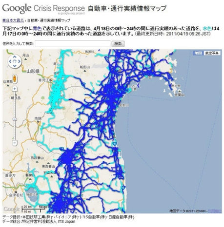 “探針”是汽車物聯(lián)網(wǎng)的重要技術之一,此前本田已經(jīng)提供了稱為“網(wǎng)上導航”的獨自服務。日本ITS協(xié)會希望推動探針技術的通用化,但是廠商之間存在競爭關系,難以協(xié)同一致。本次,在通行圖上,本田、先鋒、豐田、日產(chǎn)汽車都提供了信息,實現(xiàn)了共享信息,對救災物資運輸?shù)穆窙r信息提供了有益參考,“地震時方顯汽車物聯(lián)網(wǎng)的價值”(八木浩一)。
