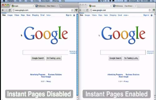 Instant Pages即時搜索網(wǎng)頁這一新功能,將會加快網(wǎng)頁打開的速度。此項功能目前只限于谷歌Chrome Web瀏覽器。用戶鍵入搜索內(nèi)容的同時,相關(guān)網(wǎng)頁便開始自行打開,點擊這些網(wǎng)頁鏈接即可省下等待時間。這項功能昨日開始公測。