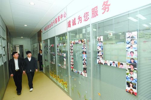 推開中國石油加油卡客服中心的大門,50個(gè)接聽坐席進(jìn)入眼簾。身著白色上衣、藍(lán)色馬甲的客服人員忙碌地接聽著各地客戶打來的電話。在這個(gè)中心的西墻上“一卡在手,全國加油”八個(gè)大字非常醒目。