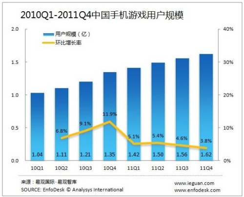 2011年第4季度手機游戲市場收入11億元