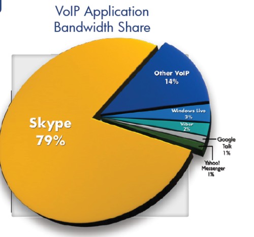 總體來看,VOIP和即時通信市場生機(jī)勃勃,涌現(xiàn)出很多新應(yīng)用。2011年下半年,Skype占據(jù)了全球移動VOIP流量的79%,盡管是仍是voip市場的老大,但Skype的流量份額已經(jīng)比2011上半年的82%有所減少。面臨著新的進(jìn)入者如Viber、ooVoo,Tango和其他應(yīng)用的挑戰(zhàn)。