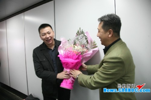 圖1:南航新疆分公司市場銷售部領(lǐng)導(dǎo)迎接“南航優(yōu)秀青年勞務(wù)工”李江濤載譽(yù)歸來