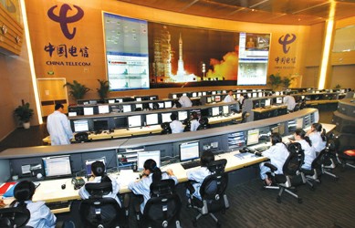 上海電信NOC(網(wǎng)絡(luò)操作維護(hù)中心)主要負(fù)責(zé)城市光網(wǎng)、移動(dòng)網(wǎng)絡(luò)、軟交換、全國(guó)骨干網(wǎng)、海光纜等新型網(wǎng)絡(luò)和業(yè)務(wù)平臺(tái)的集中監(jiān)控和實(shí)時(shí)指揮調(diào)度。當(dāng)城市中任何一個(gè)地方出現(xiàn)網(wǎng)絡(luò)故障,監(jiān)控大廳115平方米的巨型屏幕警報(bào)聲便自動(dòng)響起,中心迅速啟動(dòng)應(yīng)急方案,及時(shí)調(diào)度排障,從而為用戶提供穩(wěn)定、高效、優(yōu)質(zhì)的通信網(wǎng)絡(luò)保障服務(wù),是“亞太信息樞紐港”的守護(hù)神。