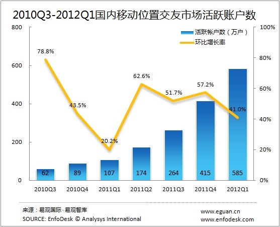 易觀:2012Q1國(guó)內(nèi)移動(dòng)位置交友應(yīng)用規(guī)模達(dá)4338萬(wàn)戶(hù)