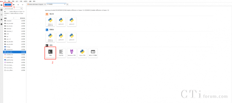 參加本次活動(dòng),用戶只需四步就可開(kāi)啟AI作圖之旅。第一步,在商城選擇stable-diffusion-xl-1.0 商品后點(diǎn)擊“立即使用”,并在后續(xù)出現(xiàn)的notebook頁(yè)面點(diǎn)擊左上角“+”,以此進(jìn)入終端頁(yè)面。