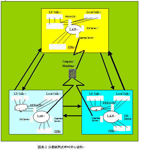 。。"對(duì)于客戶(hù)或消費(fèi)者來(lái)說(shuō),其呼叫中心場(chǎng)所的地理分布為多點(diǎn)式。但采取的接入設(shè)備和技術(shù)手段(包括軟件)等,則為一地集中式接入與統(tǒng)一分配來(lái)話。"