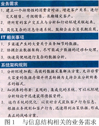 為了獲得真正智能化的企業(yè)客戶管理,信息結構必須與商業(yè)智能無縫集成。圖1描述了與信息結構相關的業(yè)務需求。這種需求和結構引起的信息技術問題使得實現真正的集成化迫在眉睫。