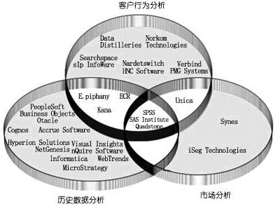 這一市場的供應(yīng)商目前主要分為兩大陣營:一類著眼于客戶行為傾向分析;另一類著眼于對(duì)客戶價(jià)值進(jìn)行評(píng)估。前者主要注重了解客戶的喜好,而后者則著重關(guān)注客戶對(duì)企業(yè)的潛在收益。