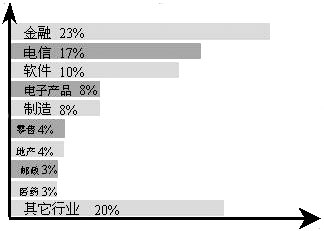 CRM的應(yīng)用已經(jīng)覆蓋了幾乎所有的行業(yè),典型行業(yè)客戶應(yīng)用案例和效果為其他企業(yè)采取行動(dòng)提供了樣板。這些行業(yè)包括銀行、保險(xiǎn)、證券、基金、電信、郵政、制造、醫(yī)藥、零售、地產(chǎn)、IT、傳媒、交通和物流等。在整個(gè)市場(chǎng)中,主要行業(yè)的占有率情況參見(jiàn)下圖: