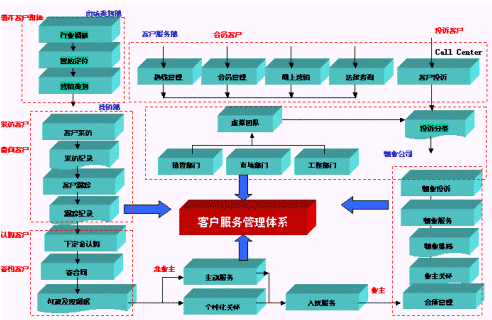 稱之為"體系"主要體現(xiàn)在以下方面:跨越和涉及房地產(chǎn)售前、售中、售后完整階段的各個(gè)部門