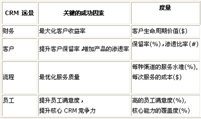 可能出現(xiàn)在平衡積分卡方式中的CRM關(guān)鍵成功因素舉例: