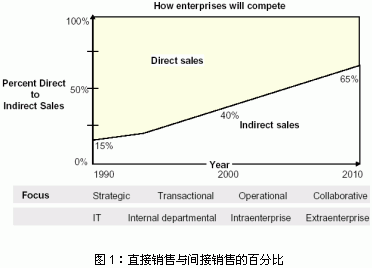 目前,在越來(lái)越多的行業(yè)銷售額的大部分是通過間接渠道取得的。例如,在高科技、生活消費(fèi)品和離散制造行業(yè),間接銷售合作伙伴帶來(lái)了的收入占總收入的70%以上