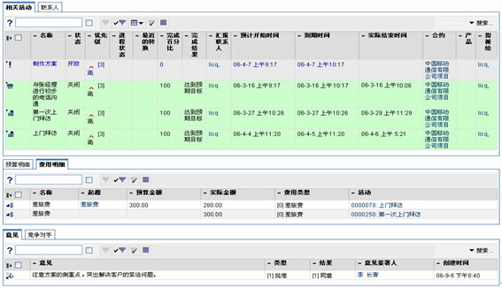 對于企業(yè)中每個業(yè)務(wù)人員每天要完成的活動可以用圖表進(jìn)行量化表示,即以周為單位,監(jiān)控團(tuán)隊(duì)中每個人工作情況的活動儀表盤。同時,也可以生成Excel格式的報(bào)表,分別為本周已完成和下周計(jì)劃完成的活動報(bào)表。