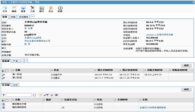 VamCRM提供專業(yè)的項(xiàng)目管理模塊,支持項(xiàng)目范圍管理、時間管理、資源管理、質(zhì)量管理、成本管理。支持以銷售合約為驅(qū)動、過程清晰、全程受控的項(xiàng)目管理方式為客戶交付產(chǎn)品和服務(wù)。VamCRM融入成熟的項(xiàng)目管理方法和成功的實(shí)踐經(jīng)驗(yàn),從整體上對項(xiàng)目進(jìn)行規(guī)劃、組織、執(zhí)行、控制,使企業(yè)可以更加優(yōu)質(zhì)地為客戶提供長期的服務(wù)。項(xiàng)目創(chuàng)建后,VamCRM系統(tǒng)會自動生成一個與當(dāng)前項(xiàng)目相匹配的文件夾,為項(xiàng)目執(zhí)行過程中產(chǎn)生的交付物或項(xiàng)目的有關(guān)文檔提供統(tǒng)一的存檔位置;項(xiàng)目全程融合項(xiàng)目管理的方法,分里程碑管理項(xiàng)目活動和交付物,實(shí)時統(tǒng)計(jì)項(xiàng)目的關(guān)鍵數(shù)據(jù),并且里程碑及所屬活動和交付物等都可分狀態(tài)量化標(biāo)識,對項(xiàng)目進(jìn)展做到實(shí)時監(jiān)控,避免了在項(xiàng)目實(shí)施中的“救火”行動和盲目發(fā)展。也可自動關(guān)聯(lián)記錄并統(tǒng)計(jì)所有項(xiàng)目進(jìn)展過程中發(fā)生的預(yù)算與費(fèi)用,實(shí)現(xiàn)項(xiàng)目費(fèi)用清晰可控。伴隨著項(xiàng)目的進(jìn)程,可以記錄所有在項(xiàng)目執(zhí)行過程中相關(guān)的聯(lián)系人、文檔、備忘錄等數(shù)據(jù),形成完整的項(xiàng)目內(nèi)容集合。項(xiàng)目中還包括基于項(xiàng)目的論壇,供項(xiàng)目組成員就項(xiàng)目的相關(guān)問題進(jìn)行在線交流,同時,項(xiàng)目管理全程與企業(yè)高效協(xié)同的業(yè)務(wù)流程無縫集成,能夠使企業(yè)的相關(guān)部門以項(xiàng)目為導(dǎo)向,集中所有資源高效協(xié)同服務(wù),大大降低項(xiàng)目執(zhí)行風(fēng)險。