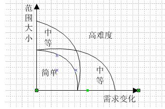 如對于一些成長型的企業(yè),他們由于業(yè)務、客戶等等都處于一個成長期,所以在項目的實施過程中,這個需求變化可能會比較頻繁。根據(jù)筆者的經(jīng)驗,一個成長型的企業(yè),從需求提出到最后項目上線,中間可能50%以上的需求會進行不同程度的調(diào)整。毋庸置疑,這就會給項目帶來不少的挑戰(zhàn)。從理論上說,實施顧問遇到這種情況,應該建議企業(yè)先暫時擱置這個項目。等到需求穩(wěn)定了,再上這個項目。但是實施顧問往往不會這么做,因為這會影響到他們自己企業(yè)的業(yè)績。為此實施顧問在遇到這種情況的時候,只有退而求其次了。即當需求變化比較大的時候,只有通過縮小項目的范圍,來減少需求的絕對數(shù)量。需求的絕對數(shù)量減少了,那么需求的變化量也會降低。從而可以達到降低項目難度的目標,可以將項目的難度設(shè)置在中等難度這個級別。