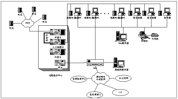 系統(tǒng)包括投訴建議處理、話路控制、秘書臺(tái)、電信業(yè)務(wù)咨詢、綜合統(tǒng)計(jì)、公告板、Web處理等業(yè)務(wù)模塊,以及系統(tǒng)用戶管理、錄音提取、基本設(shè)置、傳真管理等管理模塊,并實(shí)現(xiàn)了與97系統(tǒng)、112系統(tǒng)的互聯(lián)與資源共享。系統(tǒng)自九八年年底試運(yùn)行以來(lái),運(yùn)行穩(wěn)定,為180臺(tái)受理用戶咨詢投訴的處理工作帶來(lái)較大幫助,基本解決了用戶投訴、查詢難的問(wèn)題,提高了電信服務(wù)質(zhì)量,改善電信行業(yè)形象。