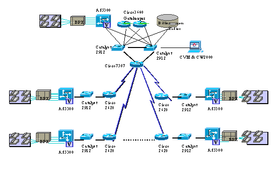 VoIP網(wǎng)關AS5300問世以來就可以支持兩個VoIP的中繼端口,在業(yè)界屬較高密度,而且99年年中就支持4個E1VoIP中繼端口。更主要的是AS5300具有Voice/Fax功能卡,能自動識別Voice和Fax,與Voice和Fax要采用不通的功能卡的產品相比,等于容量更是提高。這些技術特點為該試驗網(wǎng)工程的可擴展性提供了較高的起點。