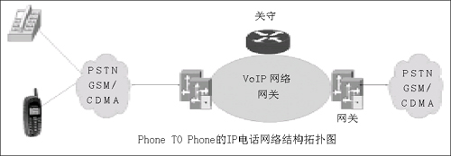 雖然從方式上看,IP話音業(yè)務包括了Phone TO Phone、PC TO Phone及PC TO PC三種方式,但是國內(nèi)主流的IP電話網(wǎng)絡仍然是以Phone TO Phone方式進行,其網(wǎng)絡拓撲結構如圖所示。