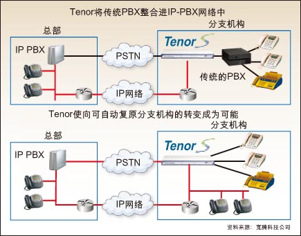 能使H.323和SIP終端得以繼續(xù)適用、還能在IP網(wǎng)絡(luò)中提供緊急呼叫(E911)服務(wù),這些性能使IP網(wǎng)關(guān)對運(yùn)營商更具吸引力。寬騰公司從Tenor產(chǎn)品開始瞄準(zhǔn)了企業(yè)用戶。
