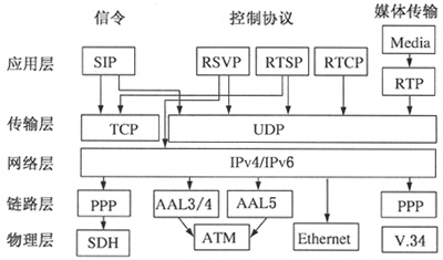 基于會話初始化協(xié)議(SIP)的VoIP協(xié)議棧結(jié)構(gòu)如圖1所示。