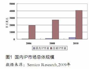 中國是全球最大的半導體市場之一,但是相對應的中國集成電路IP(知識產(chǎn)權)市場只有5610萬美元,僅為全球市場的2.8%,仍屬于起步階段。根據(jù)Semico Research的分析,到2010年中國IP市場將增長到2.47億美元,占全球市場的6%,年均增長率高達44.9%,遠超過全球IP市場的18.3%的增長率(見圖1)。