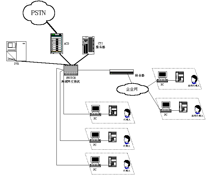 第一代呼叫中心的特點:硬件設(shè)備為普通電話機或小交換機(排隊機),簡單、造價低、功能簡單、自動化程度低,一般僅用于受理用戶投訴、咨詢;適合小企業(yè)或業(yè)務(wù)量小、用戶要求不高的企業(yè)/單位使用。目前,沒有正式設(shè)立呼叫中心的企業(yè)、單位一般采用這種方式。