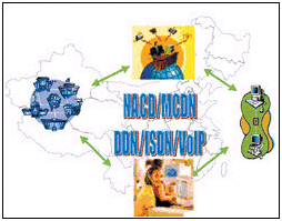 在各分呼叫中心之間,通過DDN數(shù)據(jù)專線或其他形式的傳輸網(wǎng)絡(luò)實現(xiàn)用戶信息及其交易數(shù)據(jù)在呼叫中心之間的傳輸,IP語音數(shù)據(jù)也通過租用的DDN專線傳送。各呼叫中心通過SS7或ISDN的信令鏈路判斷轉(zhuǎn)接話務(wù)員分機的閑忙,將電話在呼叫中心節(jié)點之間進行轉(zhuǎn)接。