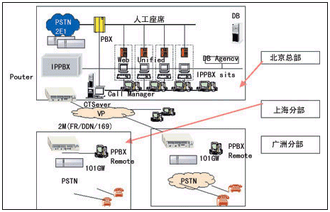 從技術(shù)角度講,建立分布式呼叫中心系統(tǒng)的關(guān)鍵,在于單點系統(tǒng)平臺、多點之間聯(lián)網(wǎng)和路由以及整個系統(tǒng)的統(tǒng)一管理三個方面,這種系統(tǒng)一般可分為基于傳統(tǒng)語音電路交換技術(shù)和基于新興語音網(wǎng)絡(luò)交換技術(shù)兩大類。