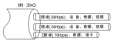 ◆基本速率接口(BRI:Basic Rate Interface),該速率由兩個(gè)承載信道和一個(gè)數(shù)據(jù)控制信道構(gòu)成,稱為2B+D,其中B(Bearer)為標(biāo)準(zhǔn)PCM速率64kbps,D(Data)為16kbps。該速率適用于家用或小型企業(yè)需要。