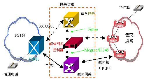 網(wǎng)關(guān)由媒體網(wǎng)關(guān)控制器、媒體網(wǎng)關(guān)和信令網(wǎng)關(guān)組成,它們的功能如下: