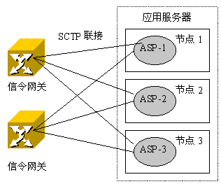 ASP是AS的一個進程實例。ASP可以是應(yīng)用服務(wù)器的激活態(tài)進程,也可以是備用態(tài)進程。網(wǎng)關(guān)控制器(MGCs)、IP SCPs或IP HLRs進程(或進程實例)就是ASP的例子。一個ASP包含一個SCTP端點,并可以配置成在一個以上的AS內(nèi)處理信令流。