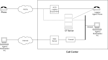 連接到傳統(tǒng)的ACD上. 主叫方的信息例如IP地址, Email地址等被傳送的哦CTI服務期. CTI服務期可以用這些信息去客戶數(shù)據(jù)庫中進行查詢, 影響到座席代表的路由,