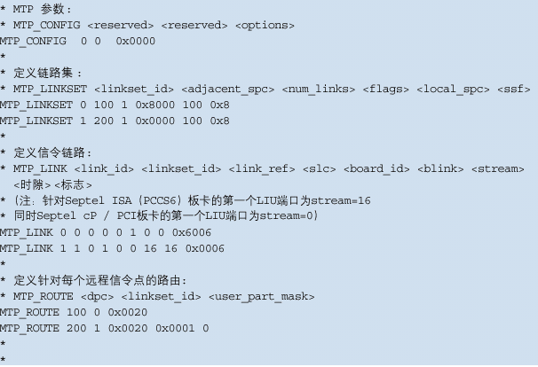 注意:這些不包括任何設置或定義信令板卡的命令,應該象定義標準的非雙系統(tǒng)一樣定義。  MTP_ROUTE 參數(shù)針對ISUP而設置,在上例中用戶部分SI=5。