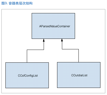 AparsedValueContainer類沒有數(shù)據(jù)和方法。它僅用于配合收集程序類的運(yùn)行。(見圖3。)抽象收集程序類純虛擬功能CollectValues()的第二個影響因素是容器,當(dāng)在具體收集程序類實施中定義了容器時,必須使用通用的基礎(chǔ)類。所以在真正使用容器之前,必須在每個具體的收集程序類中進(jìn)行向下類型轉(zhuǎn)換。