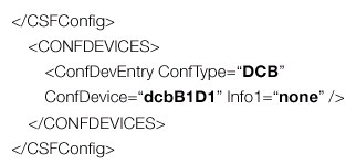 它由三個要素組成――CSFConfig、CONFDEVICES和ConfDevEntry。前兩個要素只用于為解析和數(shù)據(jù)收集過程中的每個ConfDevEntry提供環(huán)境。CONFDEVICES要素用于確定值所駐留的STL容器,容器(CONFDEVICELIST)的每個節(jié)點(diǎn)都包含一個對象,對象的成員變量名稱類似于XML文件中的屬性名稱――如ConfType、ConfDevice、Info1等等。成員變量的值將為屬性的值――DCB、dcbB1D1、及空值。
