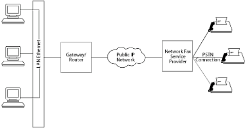 目前,許多的Internet傳真服務僅能提供存儲轉發(fā)傳真,這種服務在用戶電腦終端和世界其他地方的傳真網(wǎng)關連接在一起。這是一種傳統(tǒng)LAN傳真技術的擴展,客戶端的傳真網(wǎng)關允許客戶端PC或者工作站創(chuàng)建文檔并通過一個通用網(wǎng)關發(fā)送傳真。