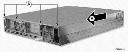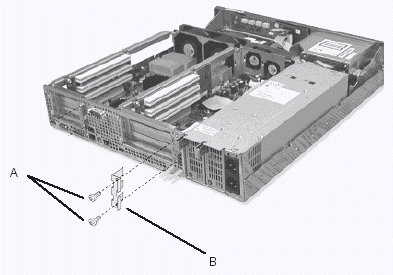 1. 卸下機(jī)箱后部用來(lái)固定PCI擋板支架的兩顆螺絲釘(參見圖5-6中A);