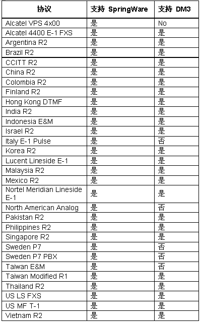 除了上面列的新協(xié)議,幾乎所有過去在Springware板卡上的PDK協(xié)議現(xiàn)在都支持DM3板卡。表1列出了支持的協(xié)議