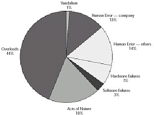 人是易犯錯的,也經(jīng)常犯錯。來自Gartner Group5的研究報告,同時也經(jīng)常被引用的數(shù)據(jù)是, 40%的非計劃關機應歸咎于單獨的操作者錯誤。這包括操作者、維護者和每一個在物理上和通信系統(tǒng)接觸的人。發(fā)生程序錯誤的人往往是半技術人員,他們更熟悉硬件安裝和鋪設線路。擁有廣泛技術經(jīng)驗的維護者往往遠程解決更為復雜的任務。