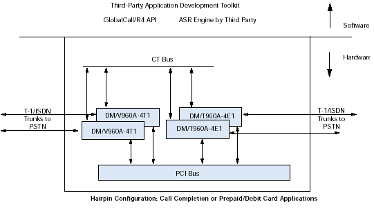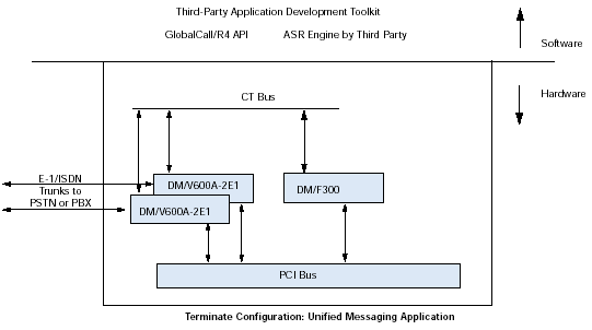 通過訪問計(jì)算機(jī)電話(CT)工業(yè)標(biāo)準(zhǔn)的ECTF H.100/H.110 CT Bus,利用DM/V-A多功能資源系列板卡,應(yīng)用程序可以具備交換能力以及擴(kuò)展到其他技術(shù)的能力,諸如網(wǎng)絡(luò)接口(DM/T或者DM/N系列),ATM連接,SS7,以及IP電話。