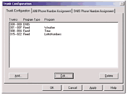 用戶可以為項目中的任何一個應(yīng)用程序分配一個中繼資源或者多個中繼資源。也可以根據(jù)從那些呼叫線路受到的ANI或者DNIS信息來決定應(yīng)該為程序分配哪種資源。