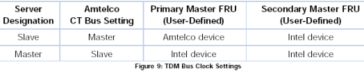 圖9列出了系統(tǒng)中的主控服務(wù)器和受控服務(wù)器的TDM總線的時(shí)鐘設(shè)置,